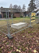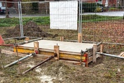 der Dreieckswiese an der Ecke Boomdyk / Am Königspark das Fundament für die aus zwei metallenen Glockentürmen bestehende Skulptur "Luthers Traum" von Georg Zimmermann hergestellt. Jetzt kann es nicht